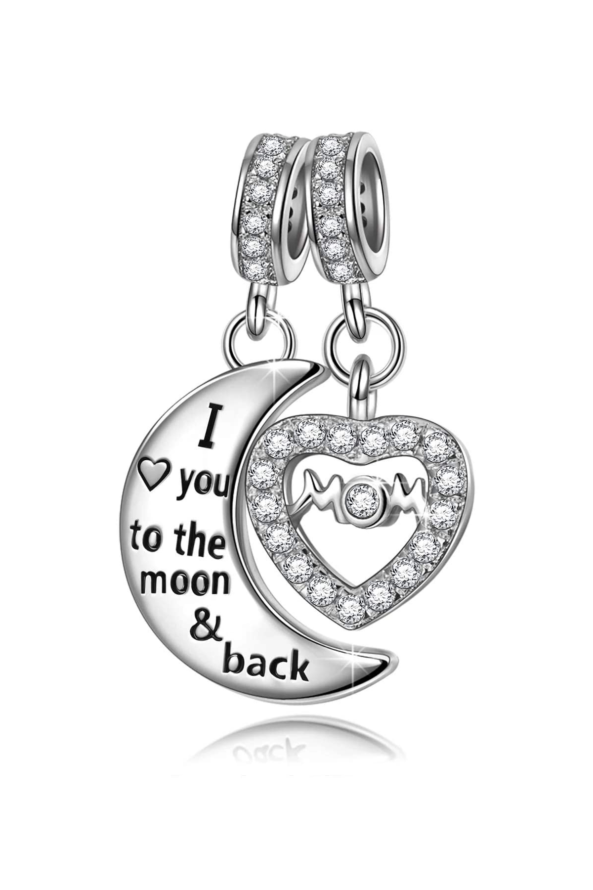 Ay ve Kalp Anne Sallantılı Gümüş Charm