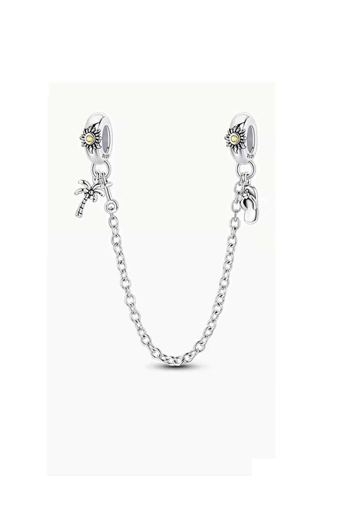 Fubena 925 Ayar Gümüş Palmiye , Terlik Sallantılı Zincirli Charm