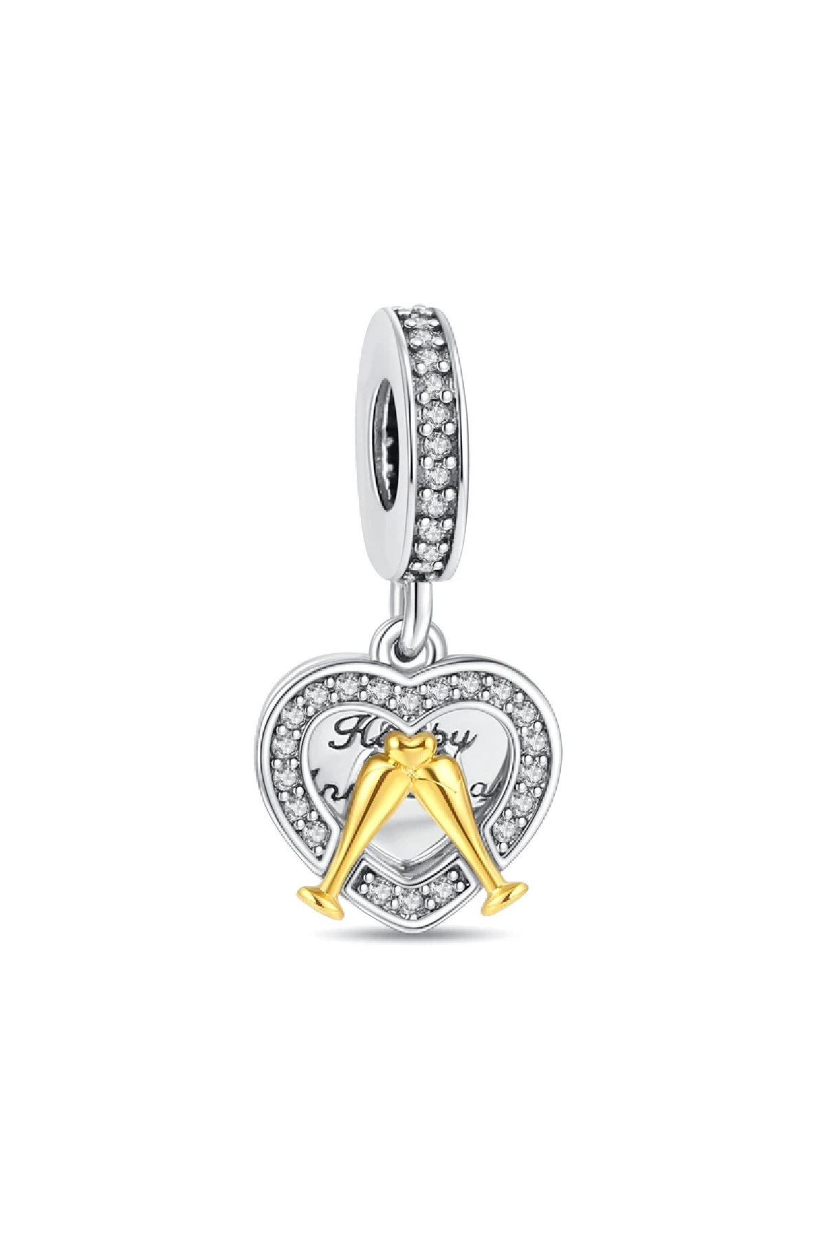 Fubena 925 Ayar Gümüş İki Renkli Mutlu Yıl Dönümleri Sallantılı Charm