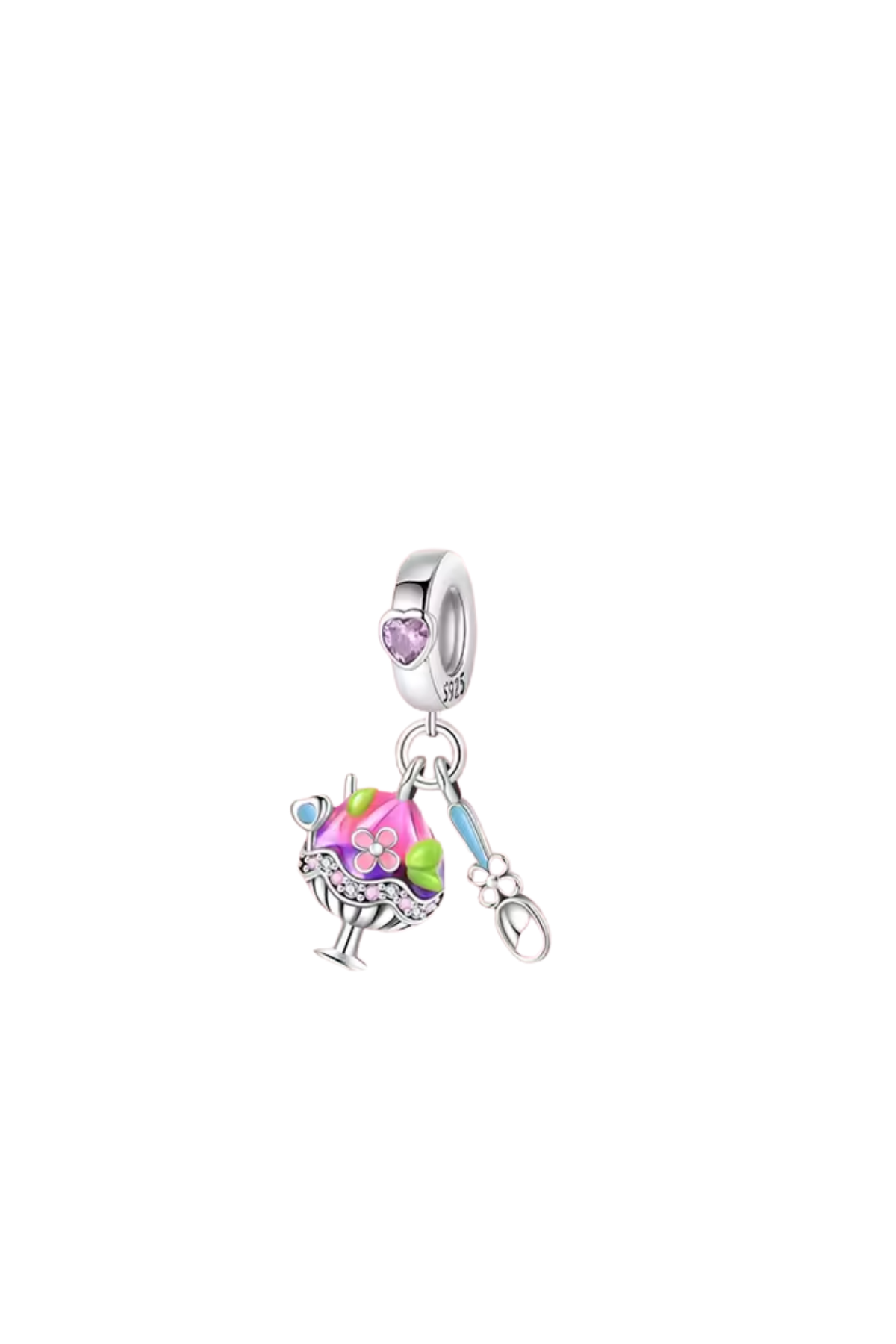 Fubena 925 Ayar Gümüş Kase Dondurma ve Kaşığı Sallantılı Charm