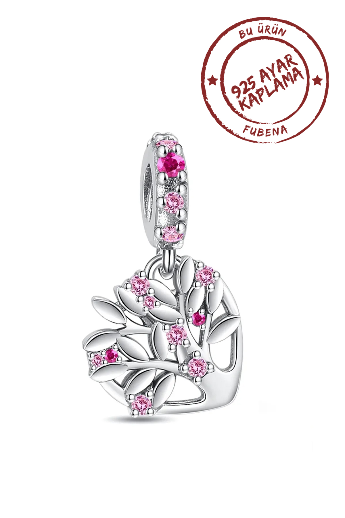 Pembe Taşlı Aile Ağacı Kalp Sallantılı Charm