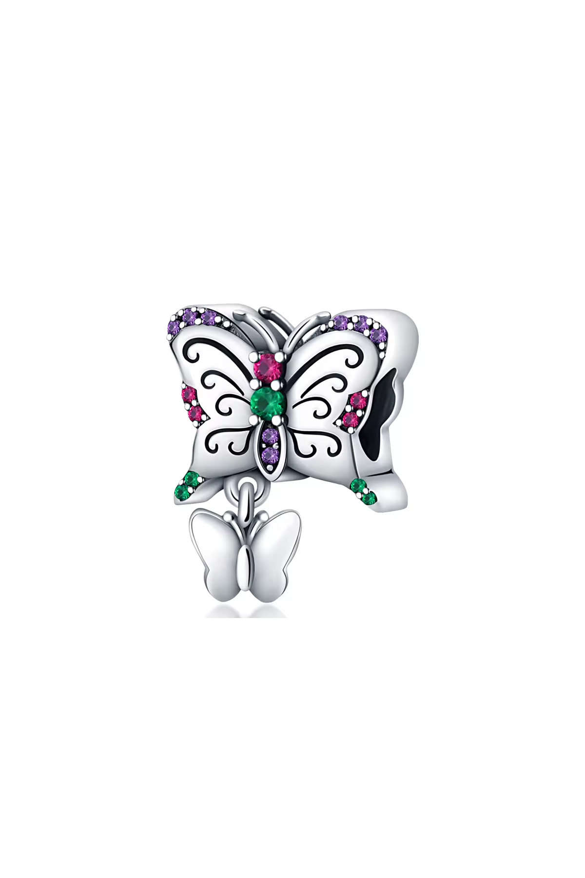 Fubena 925 Ayar Renkli Kelebeğin Dansı Gümüş Charm