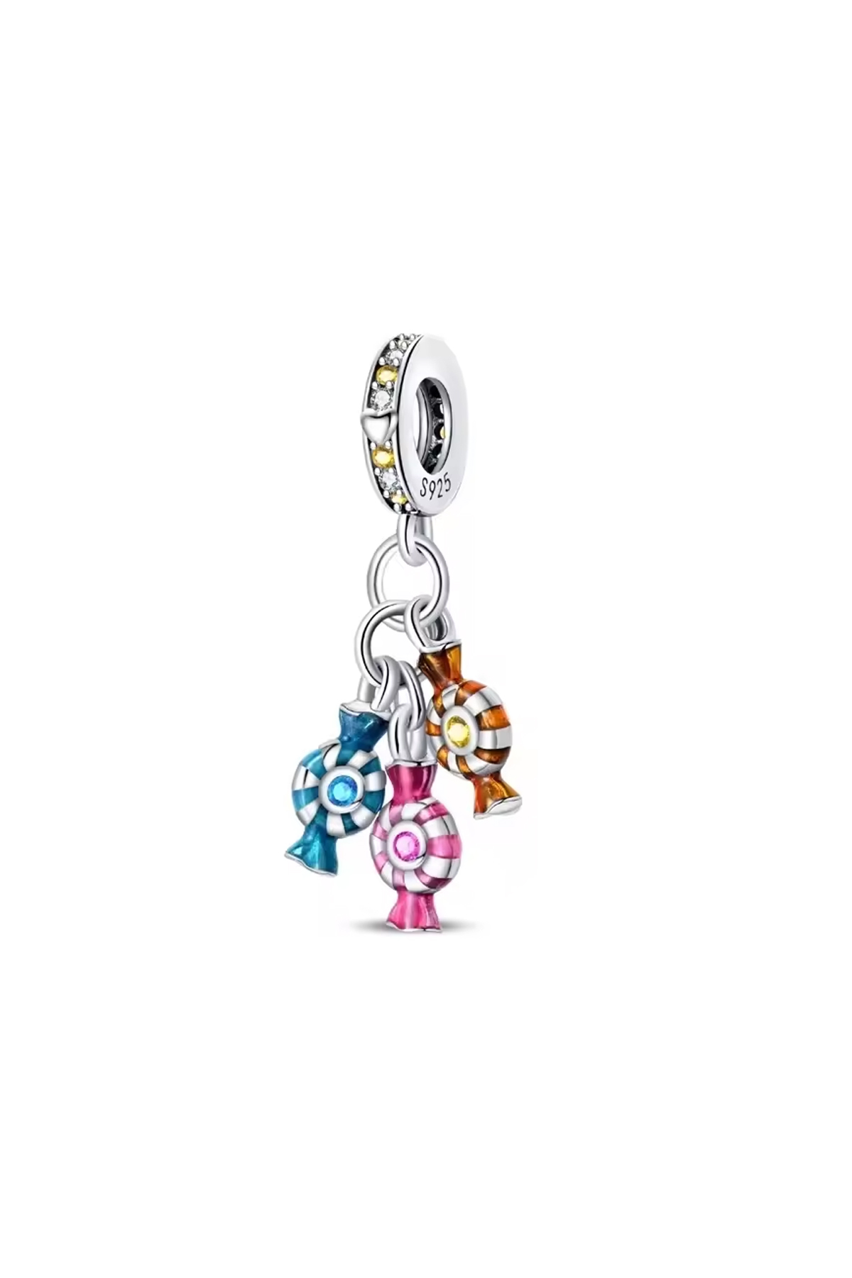 Fubena 925 Ayar Renkli Tatlar Üçlü Gümüş Charm