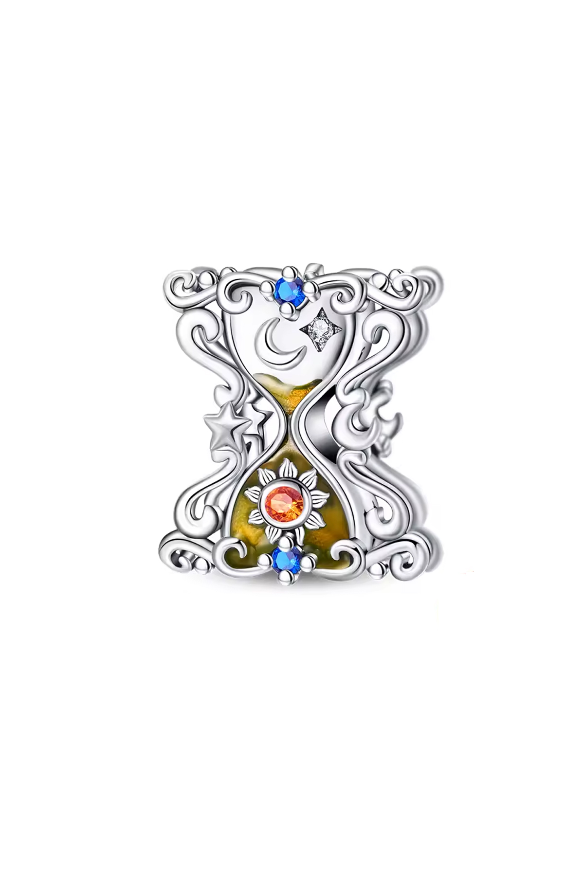 Bu zarif charm, kum saati figürü içinde dolaşan ve bitmeyen bir döngüyü anlatan eşsiz ritmik akışıyla dikkat çeker. Stilinize hem mistik bir sembol hem de zamanın sonsuzluğunu taşıyan anlam katıyor.Daha fazla ürün için Tüm Gümüş Charm, Bileklik Küpe ve Yüzük modellerimizi mağazada inceleyebilirsiniz.