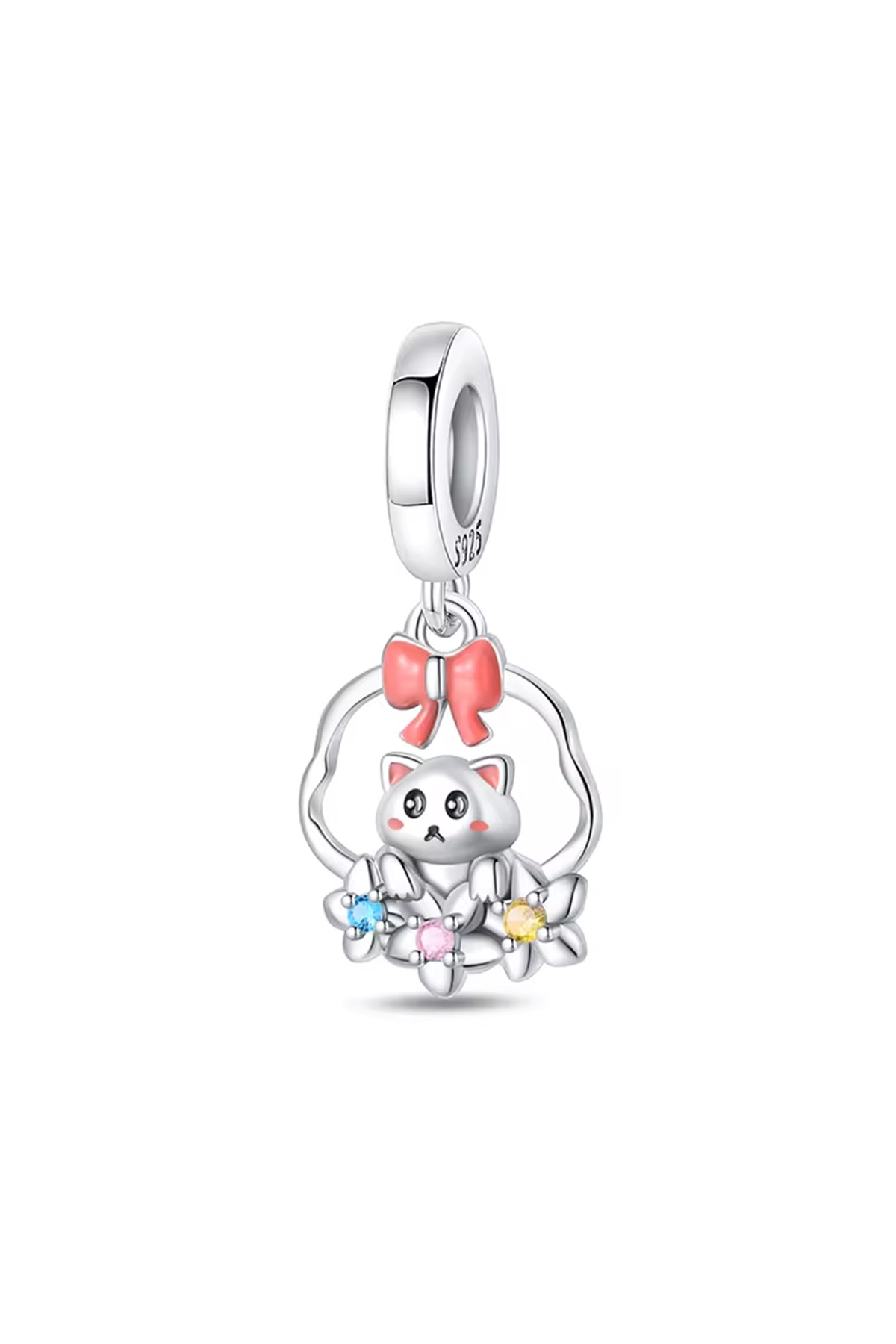 Tatlı Bıyıklar Sallantılı Gümüş Charm