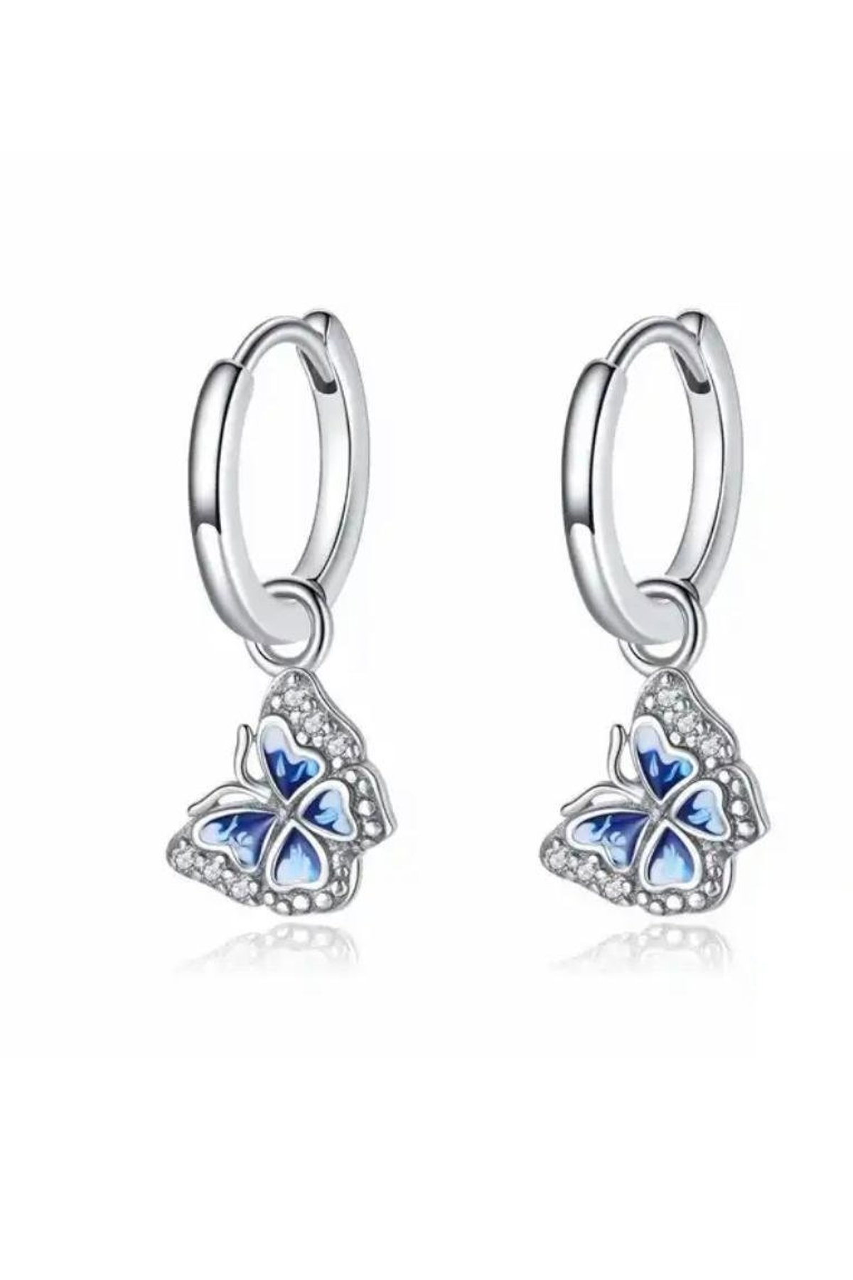 Fubena 925 Ayar Mavi Kelebek Sallantılı Gümüş Küpe