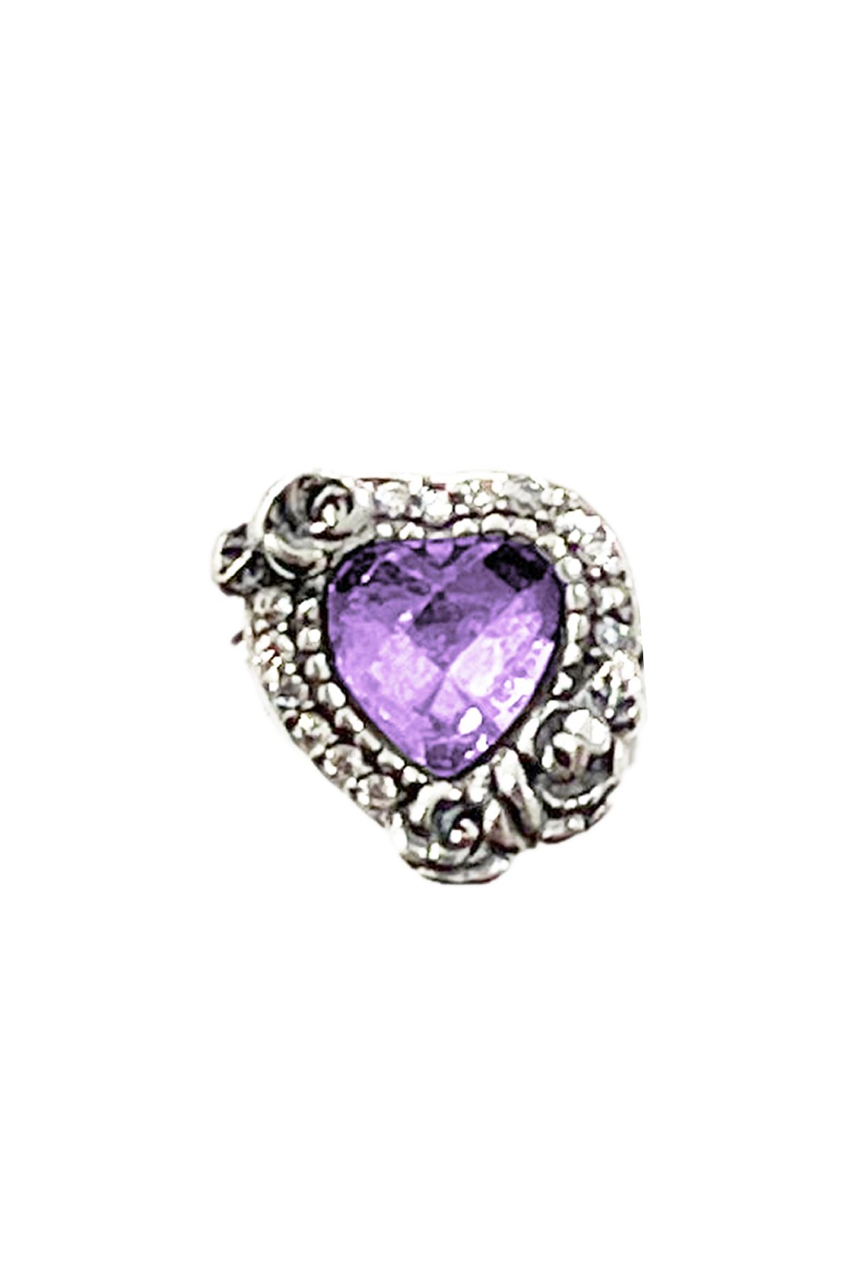 Fubena 925 Ayar Gül Motifli Renkli Taşlı Kalp Gümüş Charm