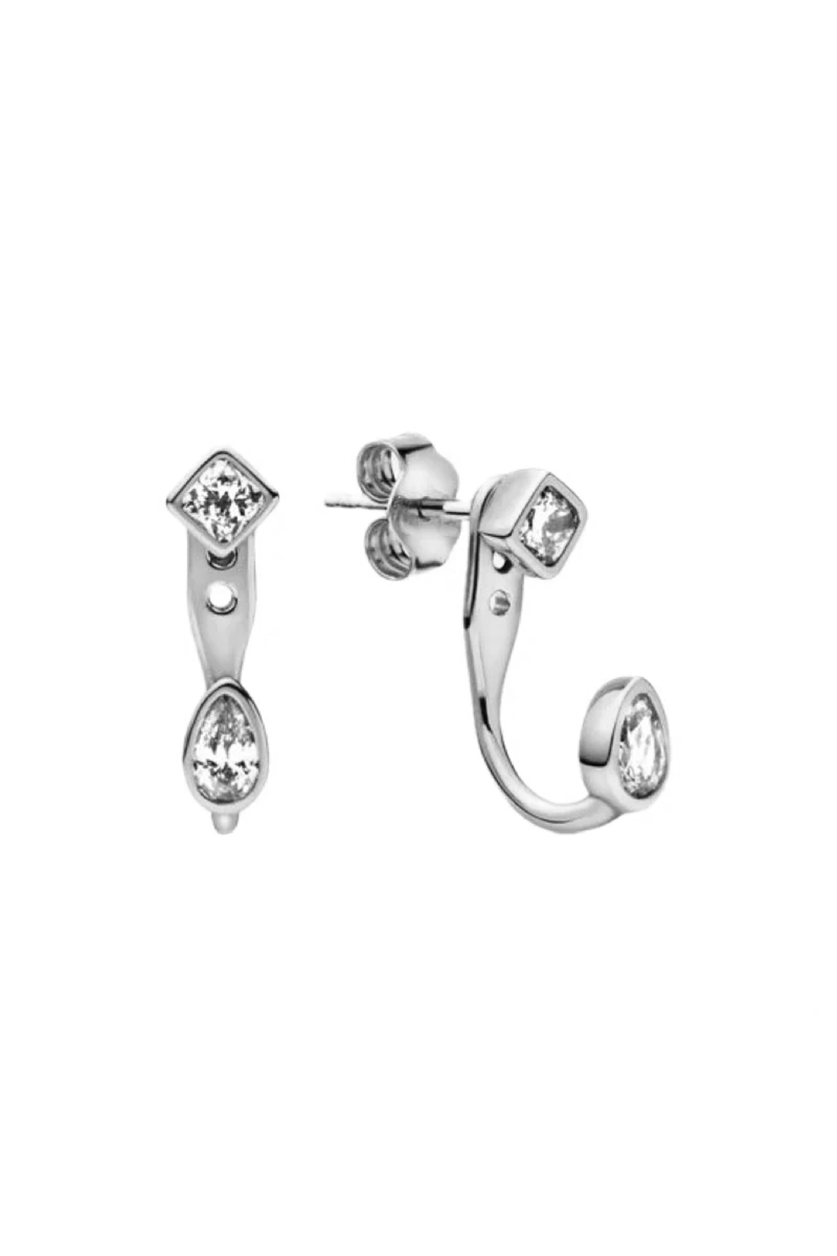 Kare ve Damla Taşı Çivili Gümüş Küpe