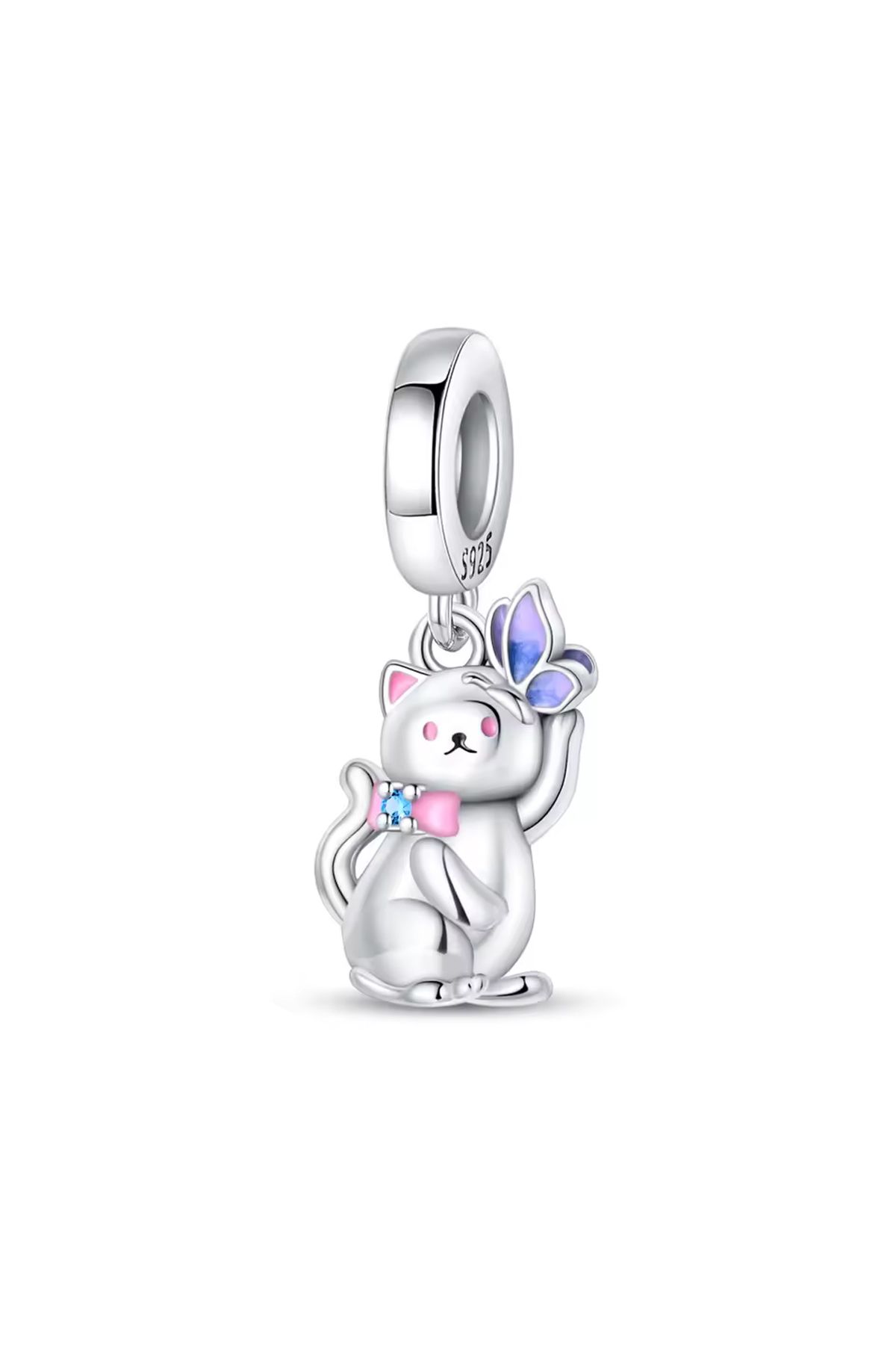 Fubena 925 Ayar Gümüş Kelebek Konmuş Kedi Sallantılı Charm