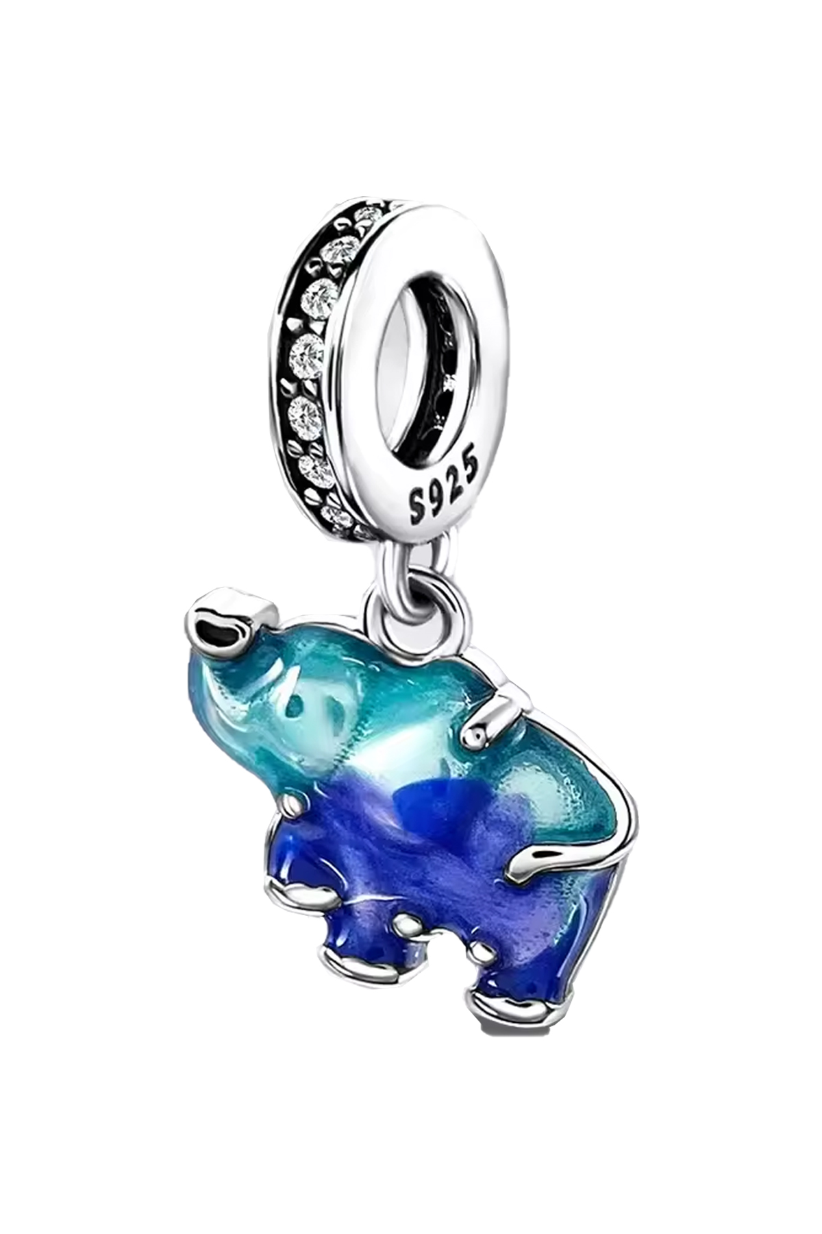 Fubena 925 Ayar Gümüş Mavi Murano Fil Sallantılı Charm