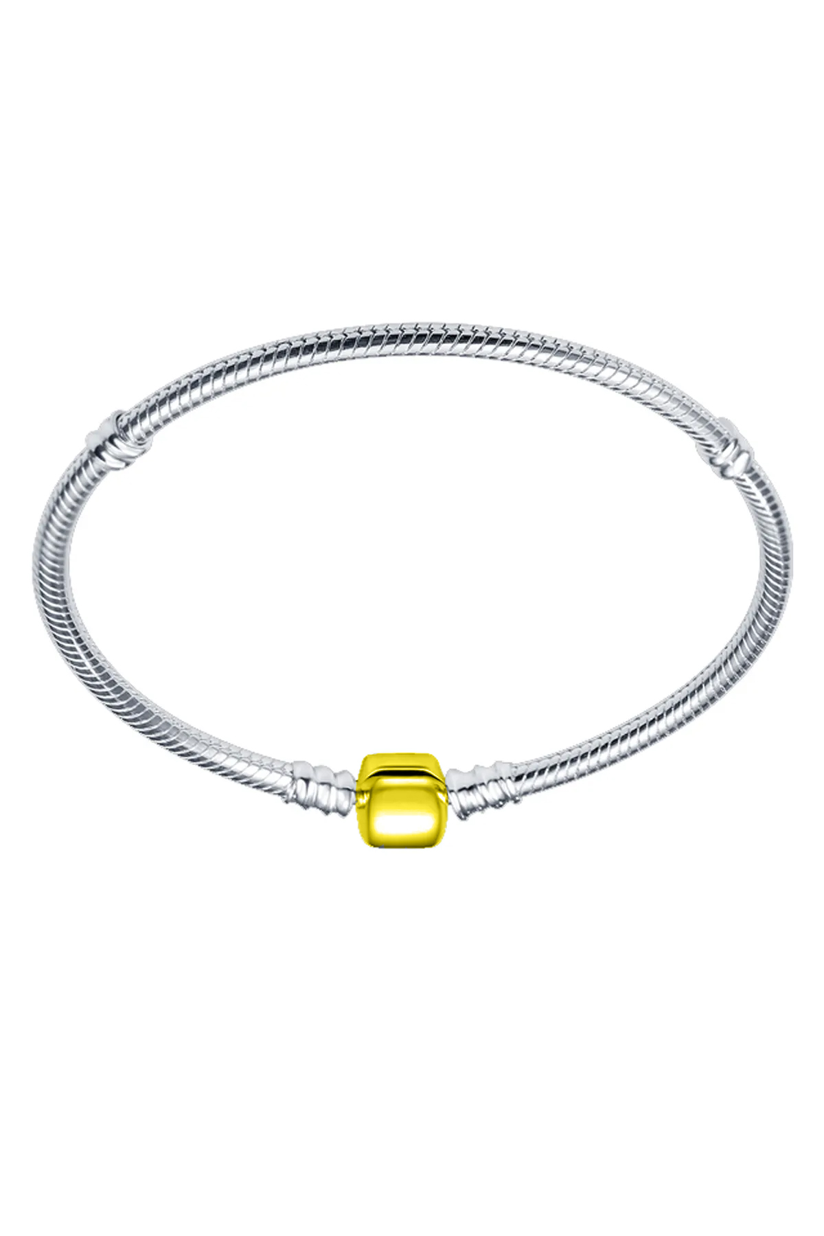 925 Ayar Gümüş Moments Büyük Düz Altın Silindir Klipsli Bileklik